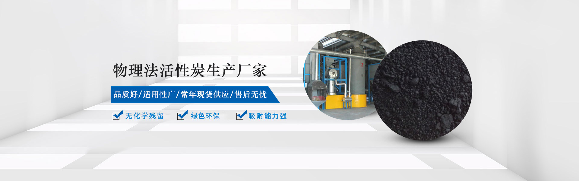 公司設計規(guī)模為20條物理法活性炭生產線,可年產2萬噸高品質物理法活性炭,產品無化學殘留,綠色環(huán)保,具有比表面積大,吸附能力強,耐磨強度高,過濾速度快等優(yōu)點。